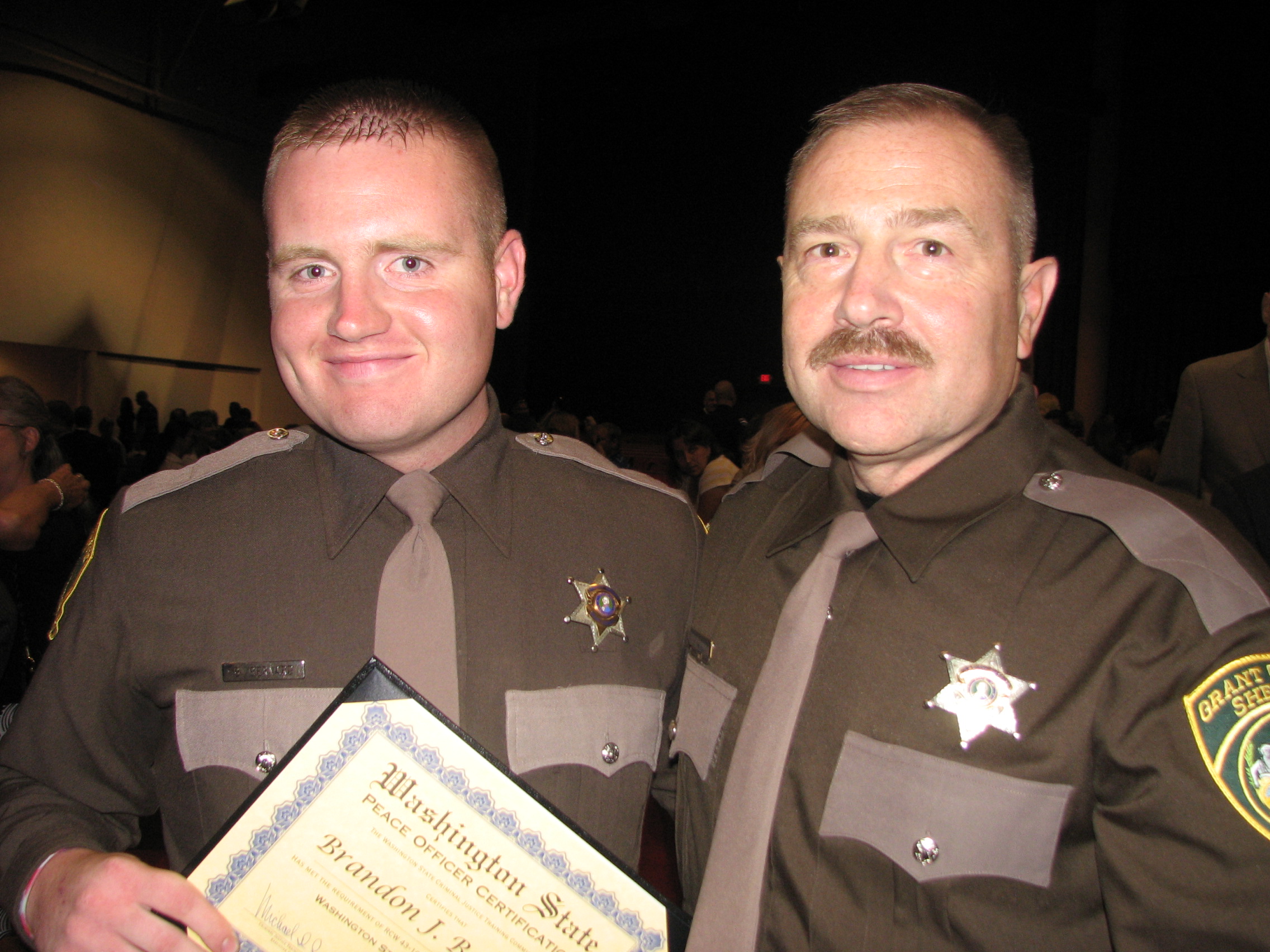 Bernard was married with two sons, one of whom, Brandon, is also a Grant County sheriff’s deputy. The two are pictured above at Bradon’s graduation from the Criminal Justice Training Center in Burien. The Sheriff’s Office called it “one of the most memorable days in John’s life.”