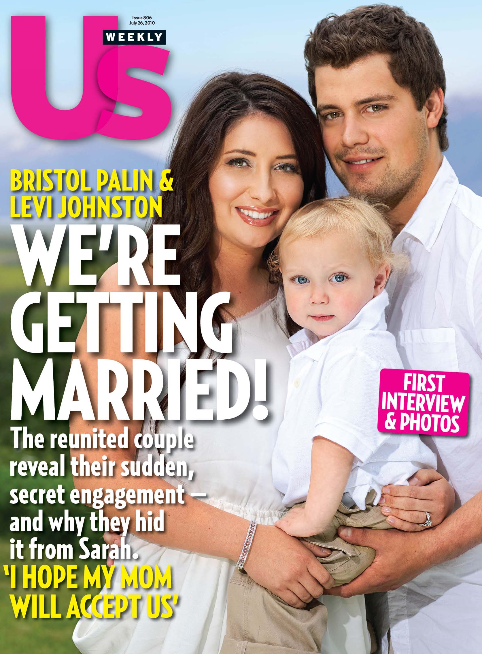 In this magazine cover image released by Us Weekly, Bristol Palin, daughter of 2008 Republican vice-presidential candidate and former Alaska Gov. Sarah Palin, poses with Levi Johnston and their son Tripp on the cover of the July 26 issue of “Us Weekly” magazine. New York Times blog post here . (AP Photo/Us Weekly)