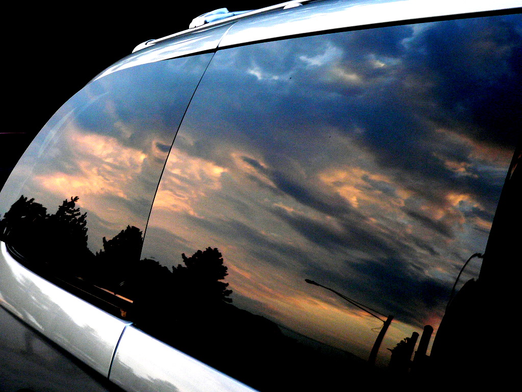 At his vantage point above Sherman Avenue, Don Sausser snapped this photo and writes: ” A parked van window provides a sky view between recent rains.”