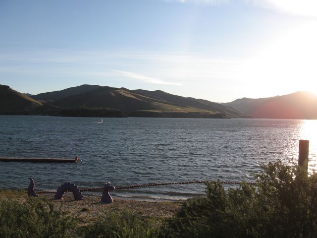 The early light kisses the hills around Lucky Peak Lake this morning, just after sunrise, as a lone windsurfer skims across the lake. Boise’s cool, rainy spring has put a crimp on the usual spring recreation for this time of year, so today - forecast to be the one warm, sunny day of the week - drew people out early, from windsurfers and kitesailors to swimmers preparing for the upcoming Ironman triathlon. Chris Lee, pictured here, was the first out.