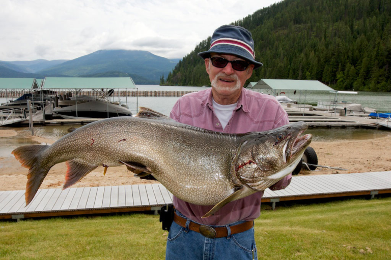 On As The Lake Churns (and her Facebook page), Pecky Cox posts this photo of a 28 pound Mac caught by Rod Moffitt of Outlet Bay on Sunday. That photo was taken by Keith Currie. Also: Jim Luby gives a State of the Priest Lake Fish address here .