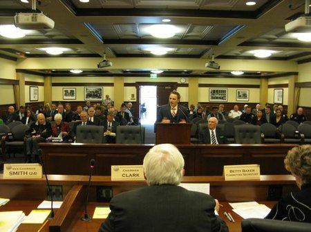 Helo Hancock, legislative director for the Coeur d’Alene Tribe, gives some background for the House Judiciary Committee on land ownership on Indian reservations, and how they ended up, on some reservations like the Coeur d’Alenes’, in a checkerboard pattern of Indian and non-Indian ownership. You can read Betsy Russell’s live-blog coverage of today’s meeting on the tribal police bill here and here .