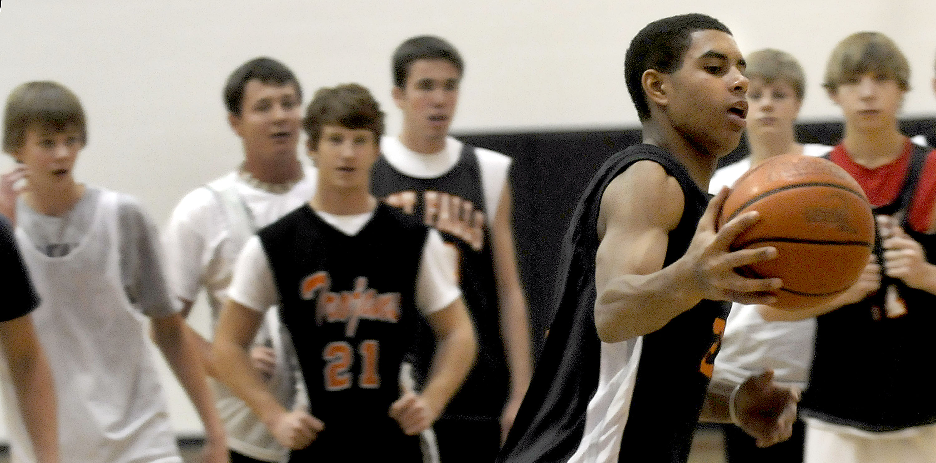 In this Nov. 25 file photo, Shawn Reid is shown during basketball practice at Post Falls High School on Tuesday. Reid was named boys’ 5A player of the year by the Idaho Statesman. Greg Lee/SportsLink has all the top players and state all-star team at this link here .