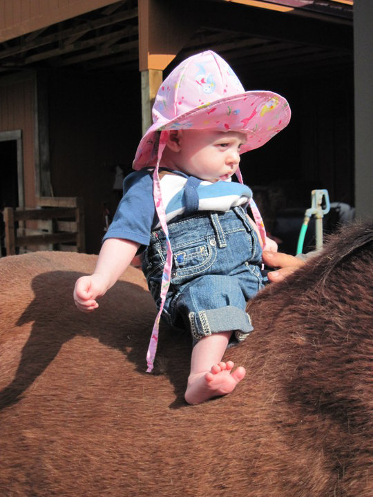 You’re simply not going to beat this photo for cute this week. I spotted it on Facebook. And asked my former SR buddy Erica Curless for permission to post it. That’s Erica’s daughter, Quinn, aboard her first horse. Erica, of course, runs a massage business for horses and dogs. (BTW, you should join my HucksOnline Facebook page, if you haven’t already.)