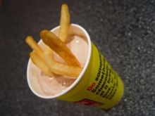 fact we had no regular potato chips… because nothing tastes better than a ham sandwich crammed full of those crispy critters. It got us discussing the odd foods that can sometimes be paired together with surprisingly tasty results. I mentioned to Dustin how in our youth, my friends and I used to dump peanuts into our Coke. He was stunned. I thought everyone did that, but maybe it was just a southern thing. Then he mentioned one of his own favorites, dunking French fries into his Wendy’s Frosty. I was stunned. Yes, French fries with gravy, that I can understand, but in ice cream? Really?!/