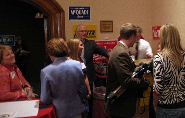 While GOP candidates including congressional hopeful Raul Labrador, Gov. Butch Otter, state Treasurer Ron Crane, Attorney General Lawrence Wasden, Controller Donna Jones, gubernatorial hopeful Rex Rammell, and even former U.S. Sen. Larry Craig have been mingling with the crowd at the GOP election-night headquarters at the Doubletree Riverside in Boise, there’s been no sign as yet of 1st District hopeful Vaughn Ward, a notable absence.