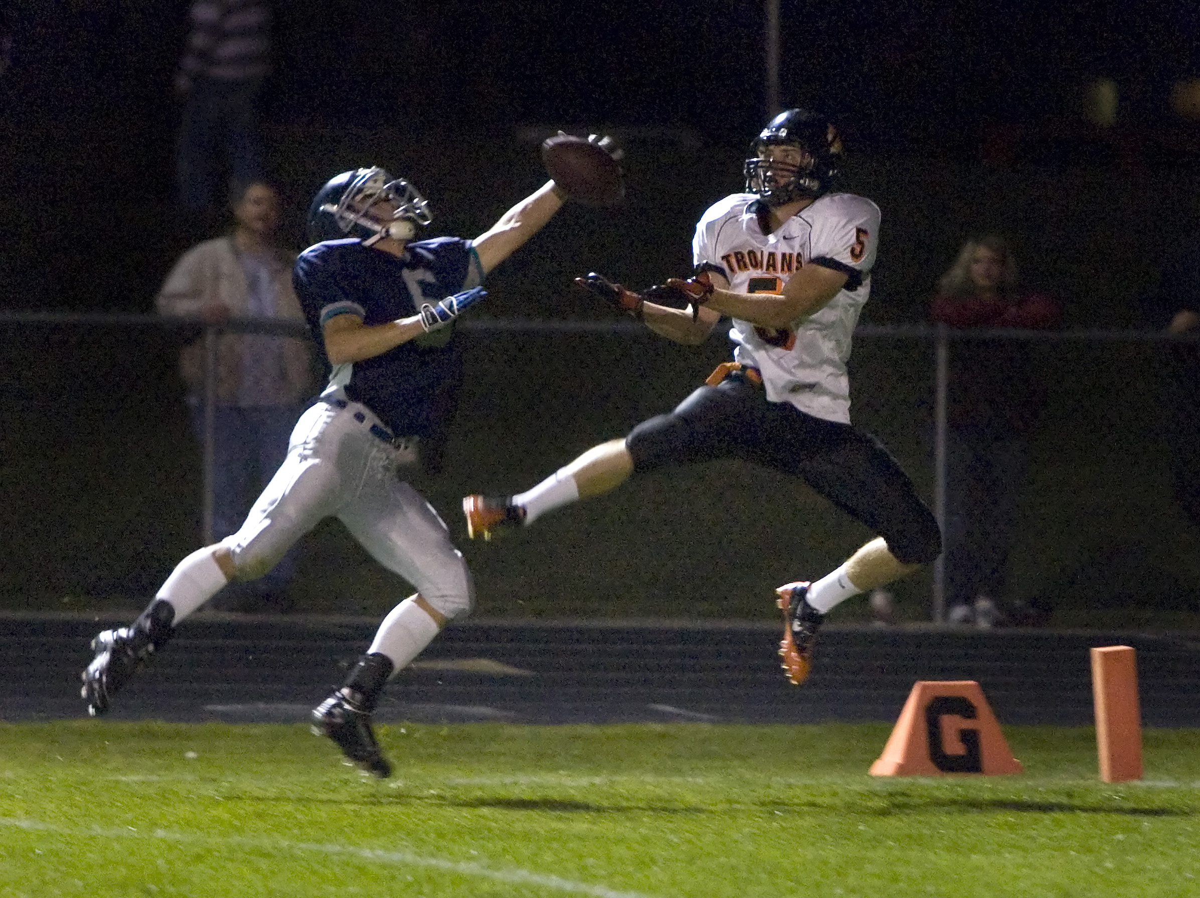 Pictured above is LC junior cornerback Kaleb Mitchell , who breaks up a pass against Post Falls. Mitchell is one of the key cogs in a talented LC secondary.