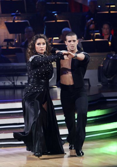 In this publicity image released by ABC, Bristol Palin, left, and her partner Mark Ballas perform during the celebrity dance competition series, “Dancing with the Stars,” on Monday in Los Angeles. (AP Photo/ABC, Adam Larkey)
