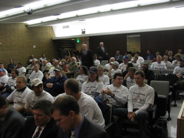 Today is the day that an ITD hearing officer will hear arguments from all sides on the proposed four mega-loads of oil refinery equipment that ConocoPhillips wants to send across U.S. Highway 12 in north-central Idaho. ITD’s auditorium is quite full; among the crowd are more than 50 Conoco employees and supporters of the project who are wearing T-shirts touting it. The Billings, Mont. refinery employs 400 people, including about 100 contractors.