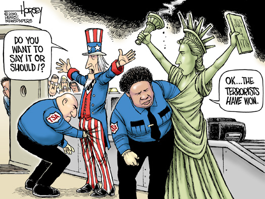 David Horsey’s cartoon about the TSA this morning is just one side of the issue, reflecting only the Fourth Amendment issue without truly considering terrorism.