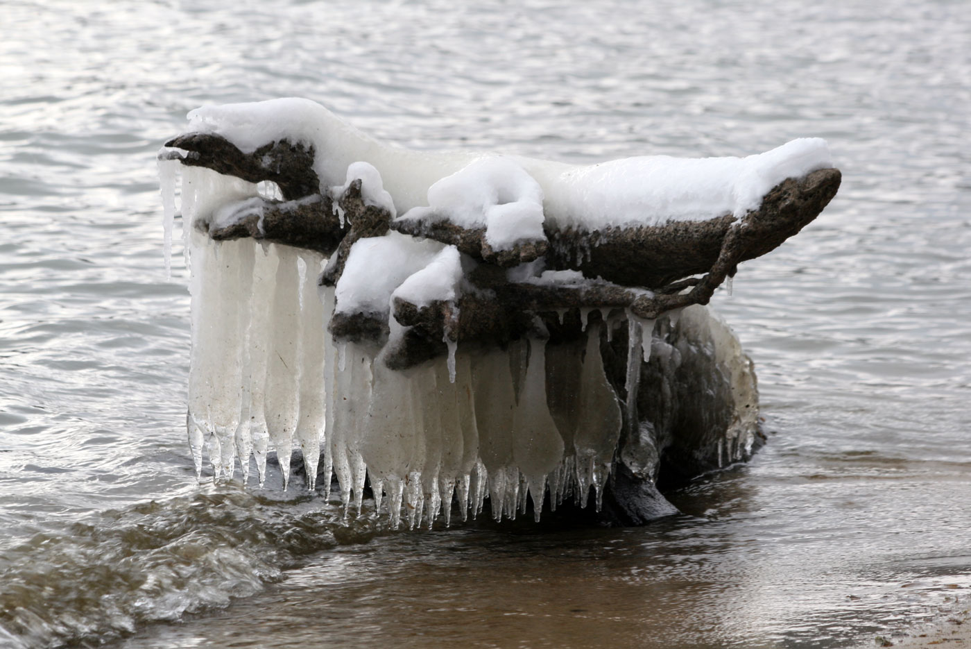 Pecky Cox/As The Lake Churns e-mails that she ” could hardly wait for daylight to take walk on the beach and see what single digit temps and wind built on beach last night.”