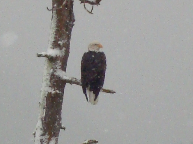 Stickman (who took the photo above earlier today) emails: “Just a heads up that the bald eagles have started to arrive. Most years they come around the 1st of December and stay till the 1st of January. They are here early. I was out there this morning and saw at least ten. They will start to come more and more each day, so I will be going out there every day from now on.”