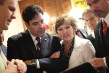 (AP/Idaho Press-Tribune Photo: Labrador with his wife Rebecca inside the Republican