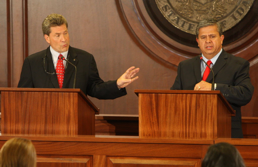 Democratic Idaho State Department of Education Superintendent candidate Stan Olson, left, and Republican incumbent Tom Luna debate at the Idaho Statehouse in Boise on Tuesday in a statewide broadcast produced by Idaho Public Television. You can read Betsy Russell’s coverage of last night’s debate here . And: blow-by-blow coverage of the debate by Betsy on her blog here. (AP Photo/The Idaho Statesman, Joe Jaszewski)