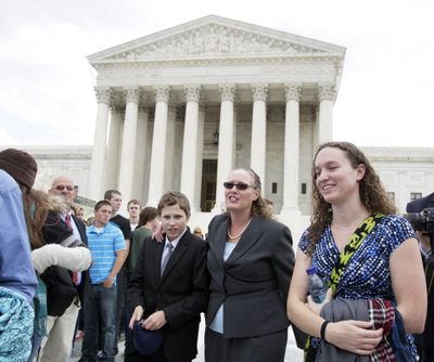 Margie Phelps, second from right, a daughter of Fred Phelps and the lawyer who argued the case for of the Westboro Baptist Church, of Tokepa Kan., walks from the Supreme Court, in Washington Tuesday after the court heard arguments in the dispute between Albert Snyder, of York, Pa., and the Westboro Baptist Church. (AP Photo/Carolyn Kaster)