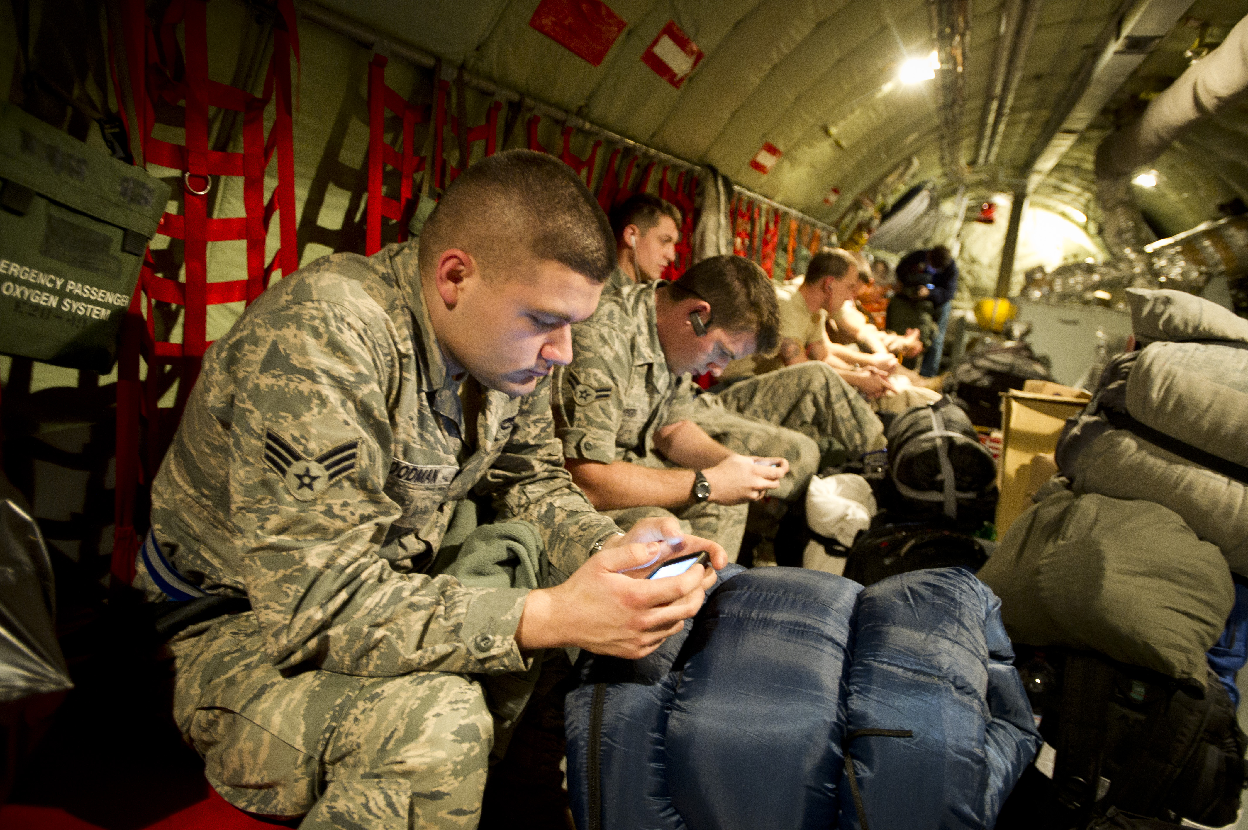 The airmen — Derek Vaughn, staff sergeant; Daniel Goodman, senior airman; Josh Myers, Antonio Rapp and James White, all airmen 1st class — will undergo training after a 12-hour acclimation to the 13-hour time zone difference in Bishkek.