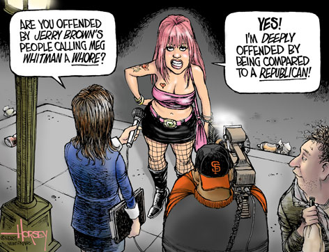In the California Governor’s race, a Jerry Brown associate called political opponent Meg Whitman a whore and people in California began howling like a pack of mad dogs.