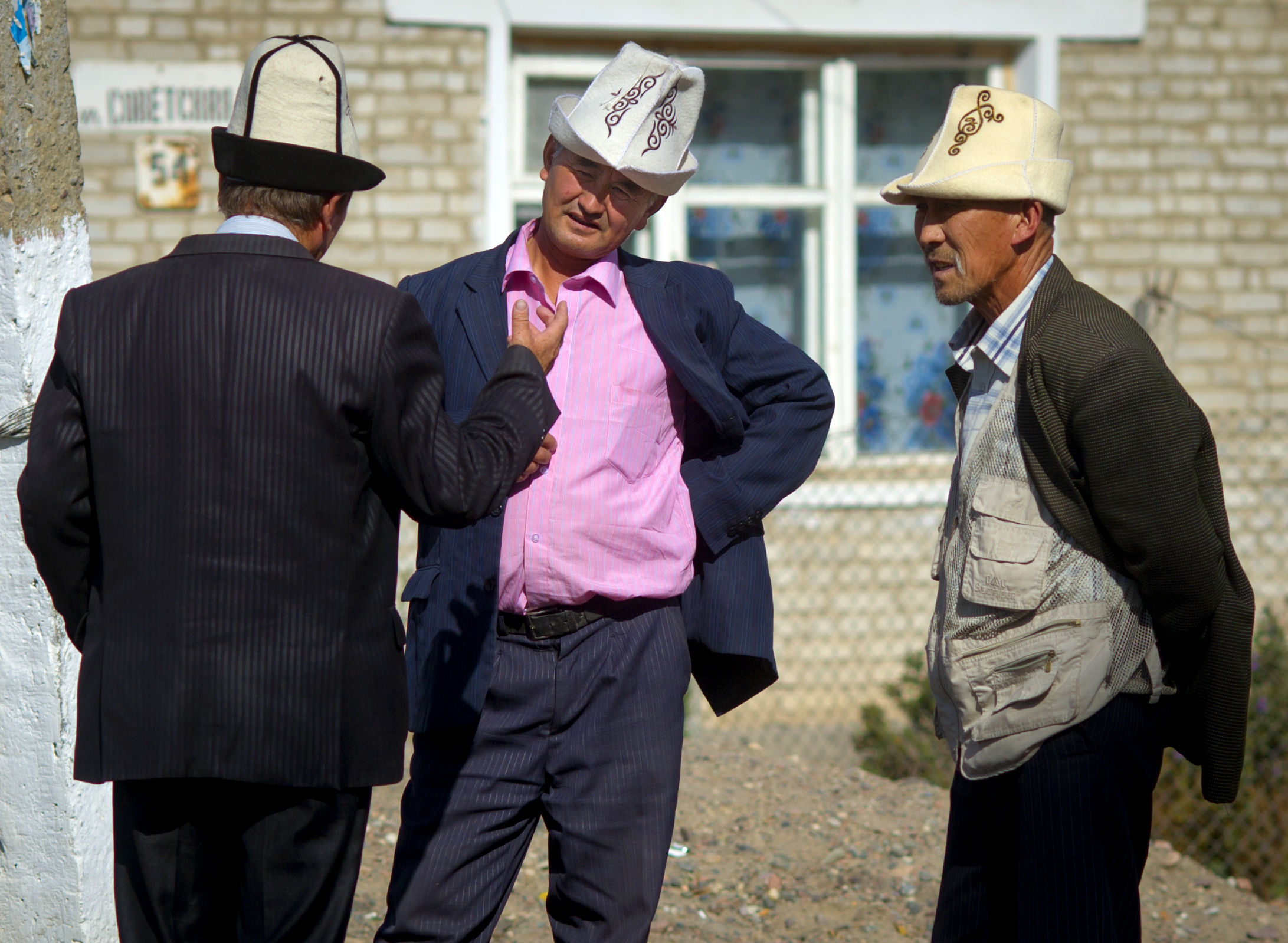 Apparently you have to have status in your village to wear one of these hats. In a village we passed through Monday, I spotted these men gathering to chat wearing their traditional ‘kolpaks’ (tall felt hats.)