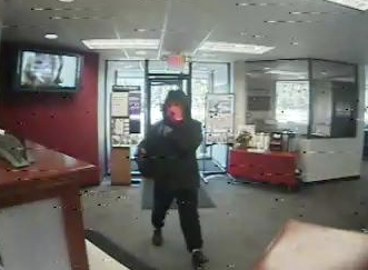 Surveillance photos show the man entering the Wells Fargo, 16234 North Highway 41, at 11:37 a.m. Police say he pointed a gun at a teller and fled with an undisclosed amount of cash.
