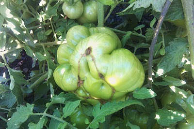 At Bent’s Beer Garden, Sunny writes re: “an heirloom tomato gone crazy” and then urges patience as she, you, & I wait for many vegetables (more photos) to turn from green or whatever other color to ripe.