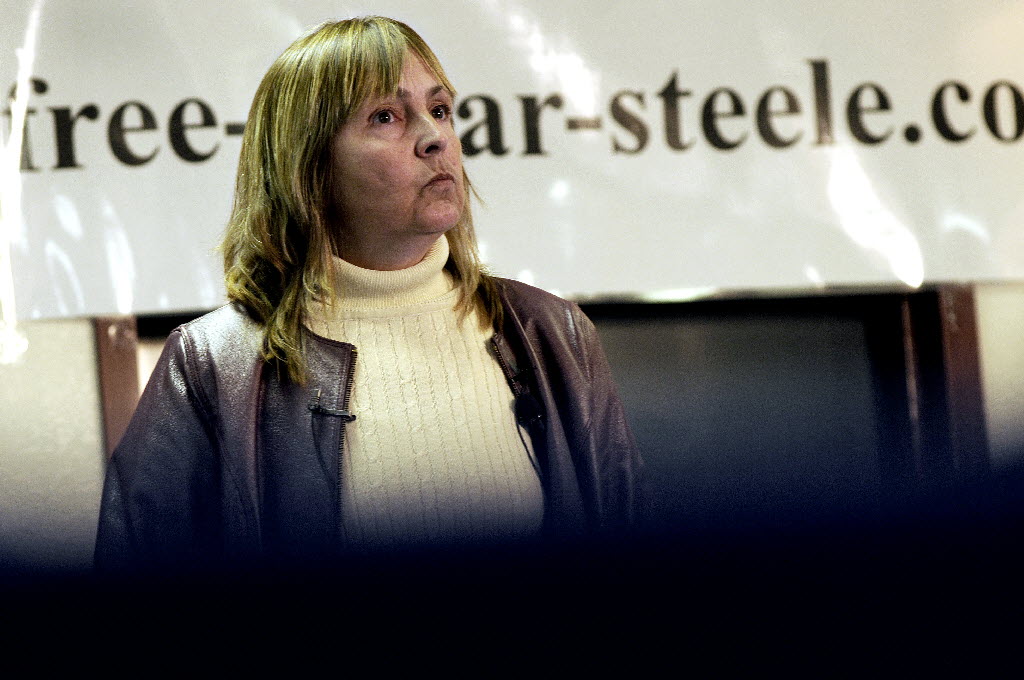 Cyndi Steele defended her husband Edgar Steele during a press conference at Silver Lake Motel in Coeur d’Alene on Monday. Investigators have accused Edgar Steele of orchestrating a planned pipe bomb attack against his wife. She said her husband had no motive to kill her but that Larry Fairfax, the informant, had been caught stealing thousands of dollars worth of coins from the family.