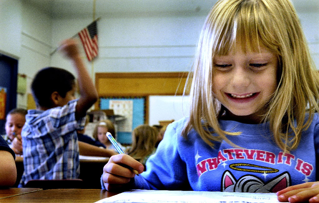 Borah Elementary 1st grader Mackenzie Blake was happy to finish her work at the end of the day at the school in Coeur d’Alene last Monday. Because of early Monday, the student’s day has been extended from 3:15 to 3:30.