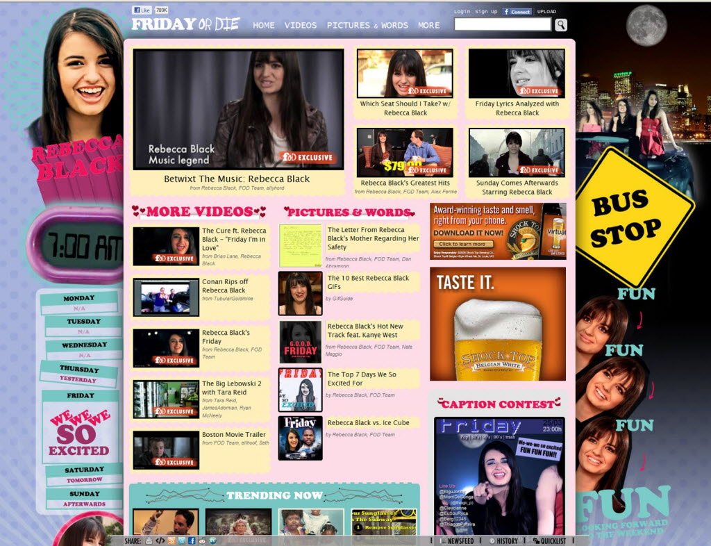 In this screen image released by FunnyOrDie.com, the homepage for the popular comedy video website “Funny or Die,” is shown with an April Fools’ Day redesign featuring teenage viral video star Rebecca Black. Story here. (AP Photo/FunnyOrDie.com)