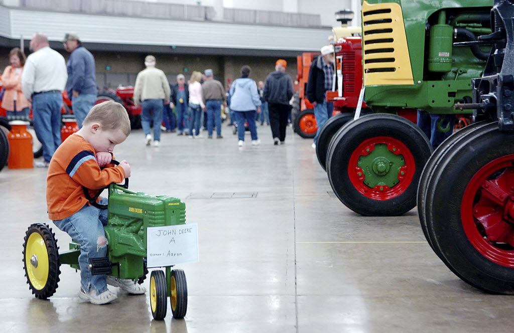 Aaron Rider, 4, of Ossian, Ind., takes a break from touring his personal John Deere around the Winter Tractor and Engine Show at the Memorial Coliseum in Fort Wayne, Ind., Saturday. You write the cutline. (AP Photo/The Journal Gazette, Samuel Hoffman)