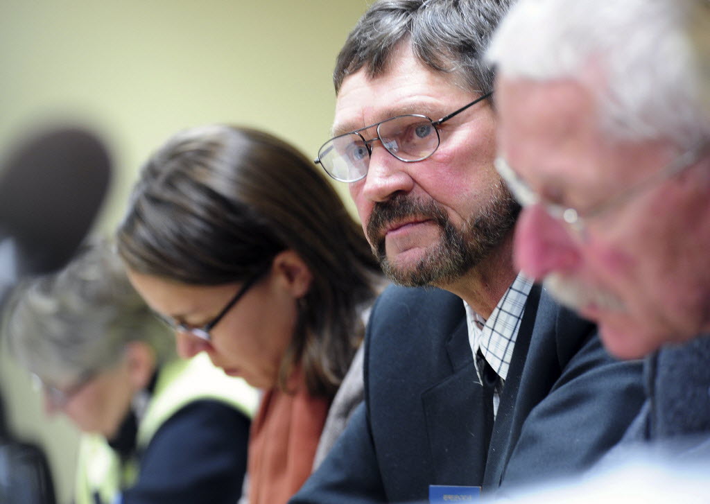 Representative Alan Hale, R-Boulder Valley, listens to instructions during the meeting of the House Natural Resources Committee in Helena, Mont. Bar owner Hale said in a speech on the House floor this week that DUI laws are harmful to small businesses. The Republican from Basin implied that people need to drive home after drinking at their local bars. Opponents say Hale’s rambling speech is no laughing matter because it perpetuates the state’s dangerous boozy culture. Story and video of Hale rant here . And: Missoulian story here. (AP Photo/The Independent Record, Eliza Wiley)