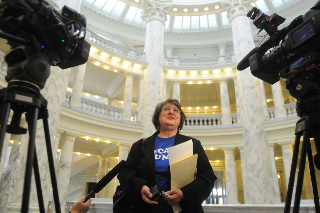 Nancy Berto of Boise answers questions for the media before submitting a petition to the Idaho Secretary of State to initiate the recall process of state schools superintendent Tom Luna on Monday at the Statehouse in Boise. The Committee to Recall Tom Luna kicked off their statewide effort Monday, submitting its first signatures to Secretary of State Ben Ysursa to begin the campaign to recall Idaho Superintendent of Public Schools Tom Luna. Dan Popkey story here. (AP Photo/Idaho Press-Tribune, Charlie Litchfield)