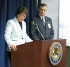 (Eye On Boise photo/Betsy Russell: U.S. Attorney for Idaho Wendy Olson and ISP Col. Jerry Russell at a news conference in Boise this morning)