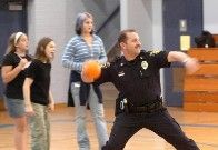 (2007 SR file photo, of Coeur d’Alene police officer playing dodgeball at Lakes Middle School.)