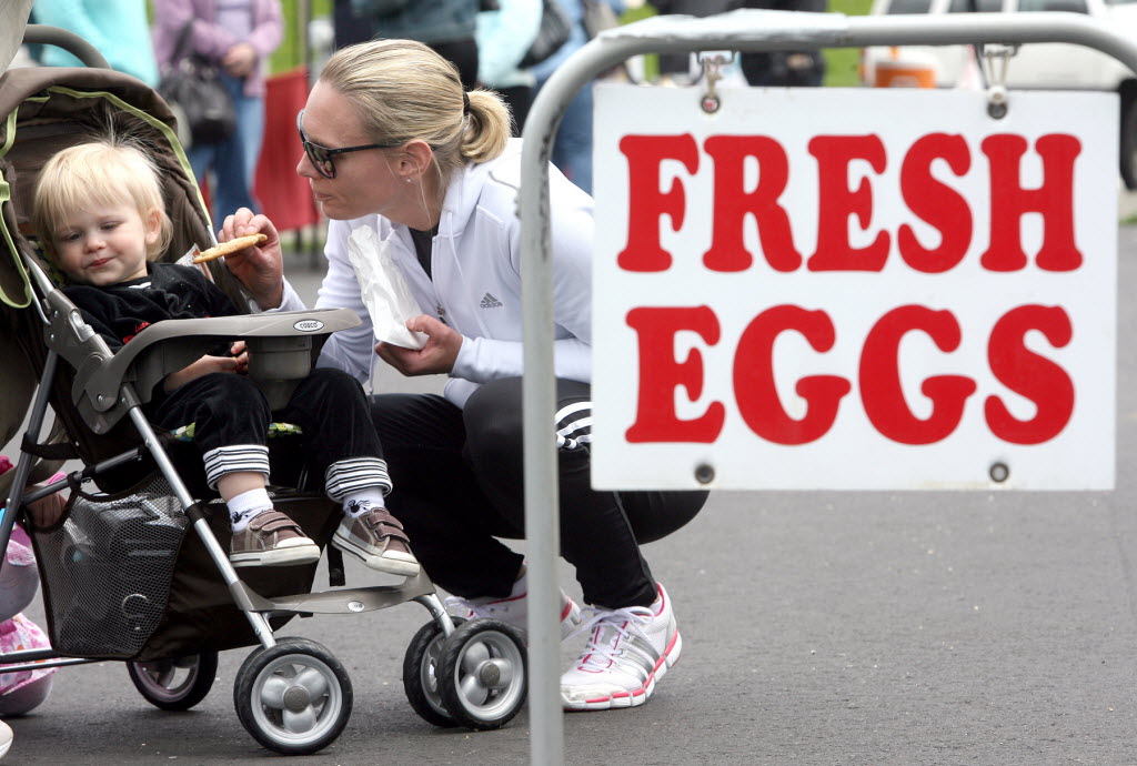 Sara Lindberg, right, of Bremerton tries to entice her son Cooper,1, with a cookie from one of the vendors at the Silverdale Farmer’s Market which is open on Tuesdays from 11-4 p.m. in the parking lot between Silverdale Waterfront Park and the boat dock. (AP Photo/Kitsap Sun, Larry Steagall)