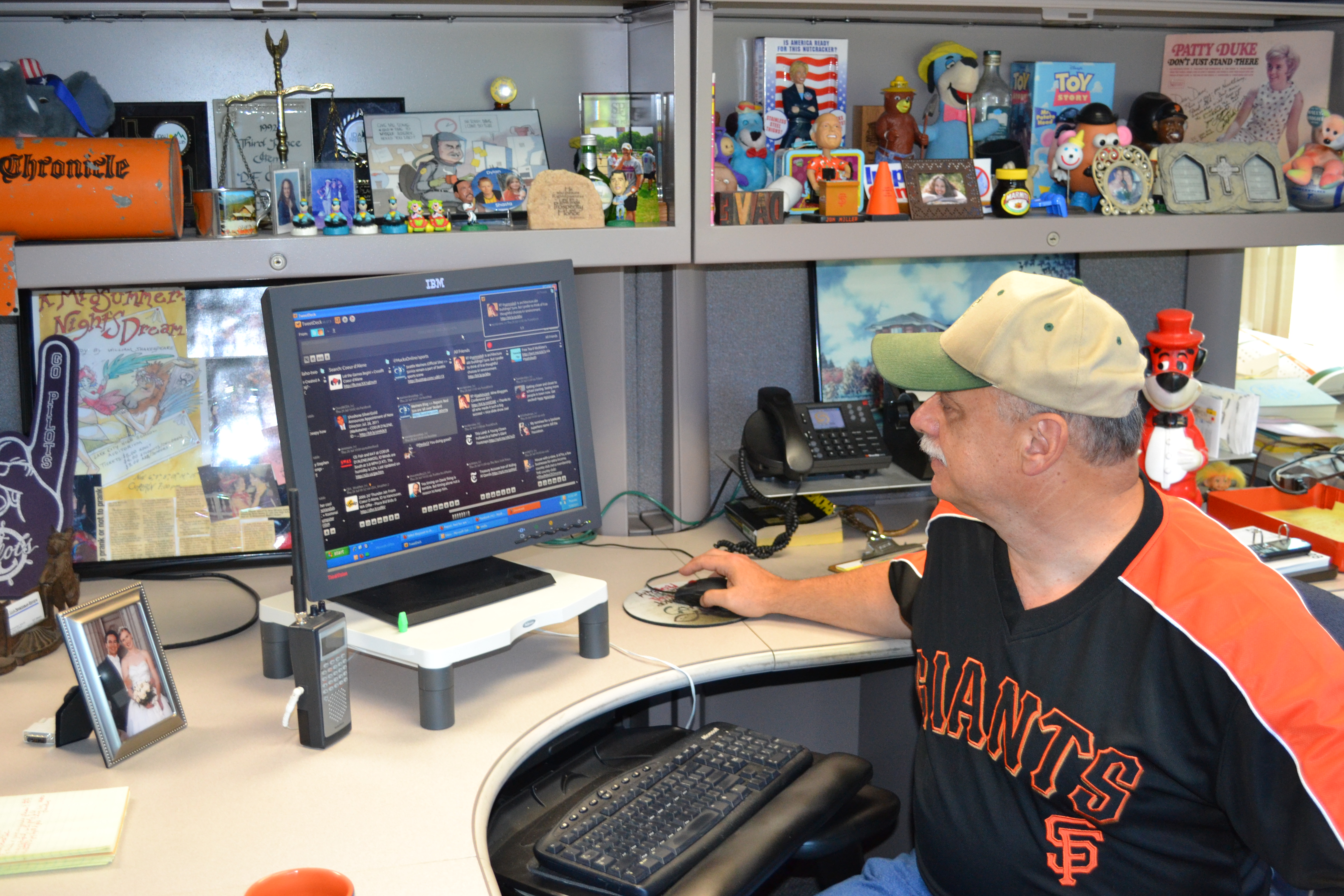 Have you ever wondered what Huckleberries Online HQ looks like? Stebbijo takes away some of that mystery with this photo of Your Huckleberry Hound in action last week. How many Huckleberry Hounds can you find? Stebbijo writes: “I wanted to capture some of the personality behind this media spin doctor, thus I transformed myself into an office crasher! He was gracious enough to let me invade his corner and document his treasures.” You can read Stebbijo’s thoughts about Blogfest, my office (w/close up photos of my toys), and Fort Ground Grill fare here.