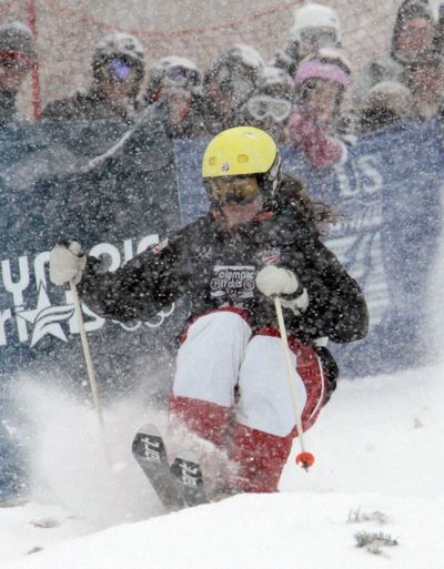This Dec. 23, 2009, file photo shows Ani Haas skiing through the moguls during the women’s Olympic Trials Freestyle competition in Steamboat Springs, Colo. Haas says she feels fortunate to have suffered just scratches to her left arm and chest when she encountered a black bear while running in western Montana, near her hometown of Missoula Friday morning. Story here. (AP Photo/Nathan Bilow, File)