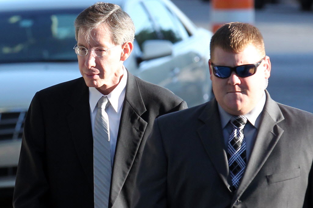 Religious leader Warren Jeffs, arrives at the Tom Green County Courthouse escorted by a law enforcement officer Wednesday in San Angelo, Texas. Jeffs, 55, was found guilty of sexually assaulting two girls he took as brides during so-called “spiritual marriages.” More here. (AP Photo/San Angelo Standard-Times, Patrick Dove)