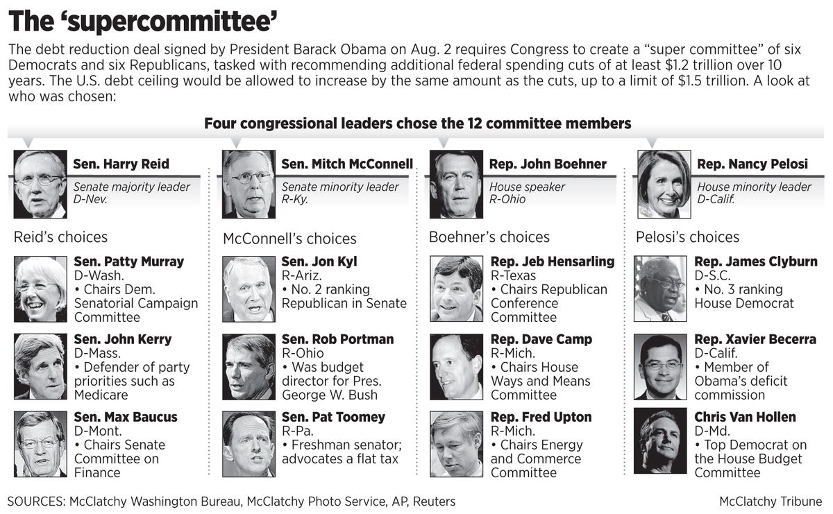 The congressional committee, created as part of the debt limit and deficit reduction agreement enacted last week, is charged with cutting more than $1 trillion from the budget during the coming decade. If the committee doesn’t decide on cuts by late November – or if Congress votes down the committee’s recommendations – spending triggers would automatically cut billions of dollars from politically delicate areas like Medicare and the Pentagon.