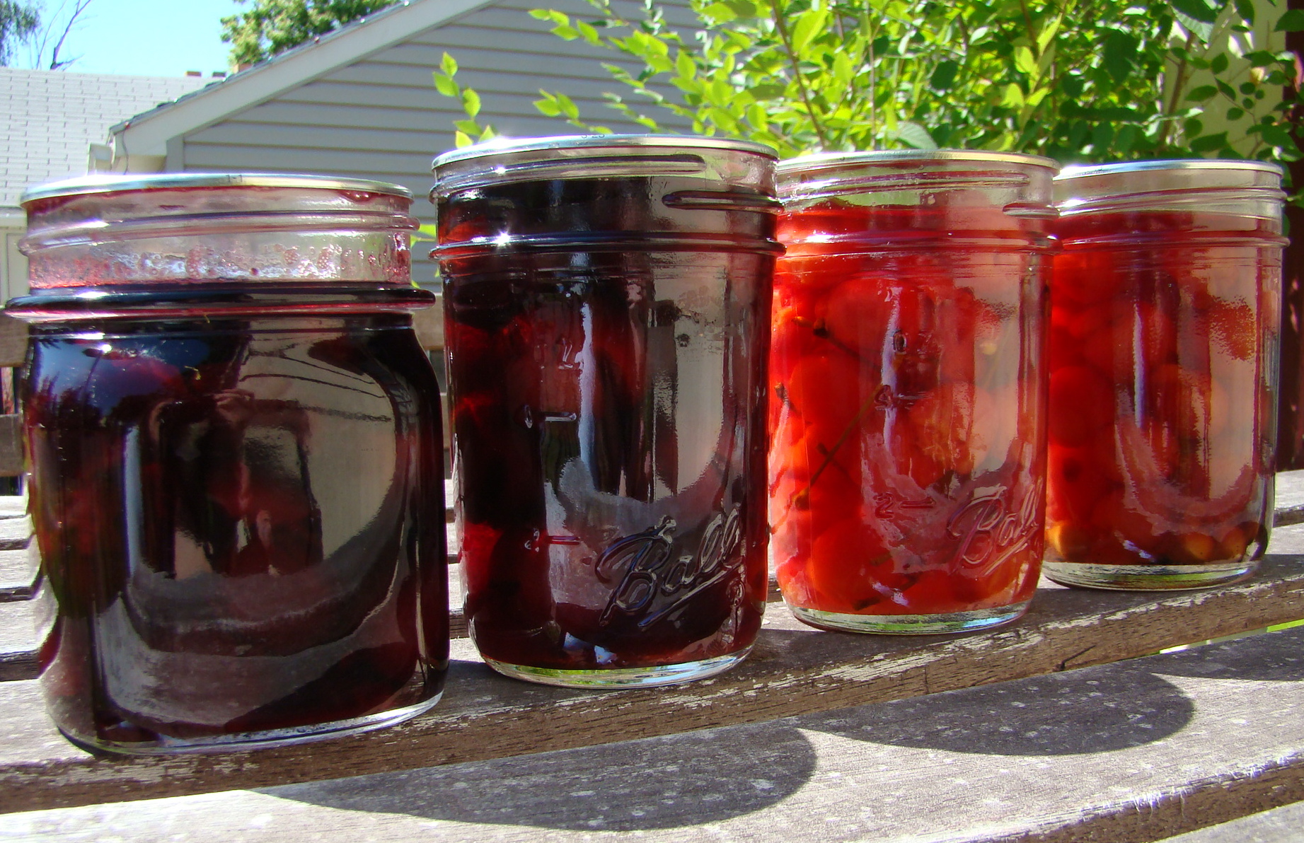 Put ‘em Up is one of my favorite preserving cookbooks. The Drunken cherry recipe has very few ingredients (cherries, bourbon, brown sugar and water), and does not call for processing. The alcohol content is high enough to make them shelf stable for up to a year.