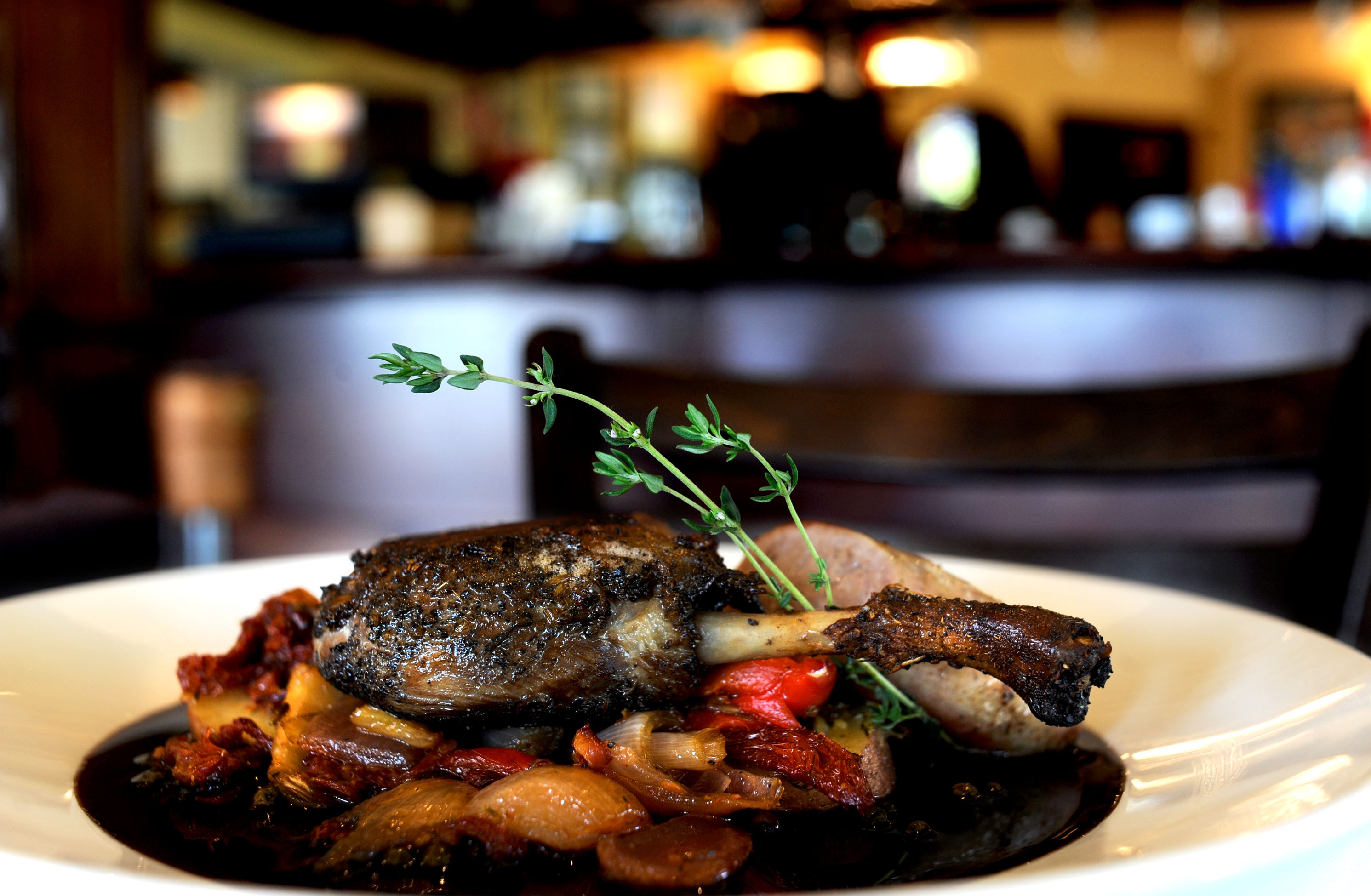 One of the main courses offered at Fleur de Sel is the duck sausage and duck leg confit, featuring sun-dried tomato and fennel ragout, along with a green peppercorn demi-glace. .