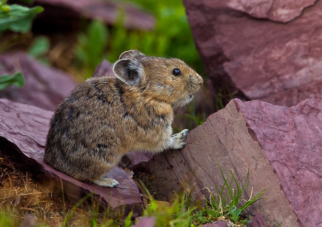 “After a grueling hike of several hours off trail, we were set up (with our cameras) on the edge of this rockslide waiting for the pika’s to make their appearance. They seem to dislike the warm mid-day heat and become active just before dark. The entire hike in we walked through fresh grizzly digs that were made within the last one or two days.. we kept one eye watching for one to make an appearance.