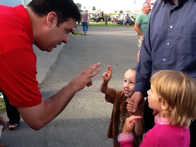A Berry Picker provided this photo from the North Idaho Fair at the Kootenai County Fairgrounds opening day, featuring Raul Labrador either discussing a child’s age — or possibly term limits — in front of the Republican tent at the fairgrounds. (If you get a good photo at the fair, please send it to Huckleberries Online for possible publication)