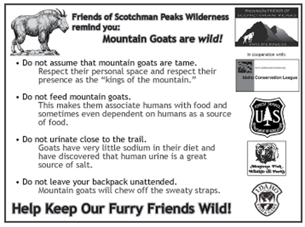 The Friends of the Scotchman Peaks Wilderness would like to see that great relationship continue, but they’ve learned for experts that even docile-looking mountain goats can become unpredictable and dangerous if humans spoil them.
