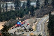 (AP file photo: In February, the first ConocoPhillips megaload staged in Kooskia awaits the next leg of its journey to Billings)