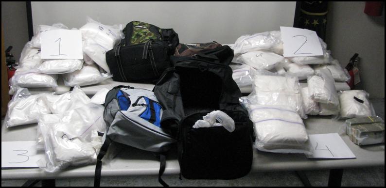 Border patrol agents found the drugs and cash in three backpacks and a duffel bag in a field at the border just west of the Danville port of entry.