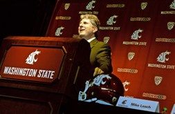 (Christopher Anderson SR photo: New WSU football Coach Mike Leach is introduced to the fans at Pullman Tuesday)