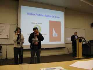 All were well-represented in the group that filled a lecture hall at Lewis-Clark State College, from city council members to board clerks to reporters and editors to a state lawmaker. In their evaluations of the evening session, one reporter wrote, “A terrific review - and enjoyable.” An elected official wrote, “My entity needs to review our open meetings.” Wrote a school board member, “We need to be more careful with email,” adding that her takeaway was, “Don’t stall on public records requests and watch the emails.”