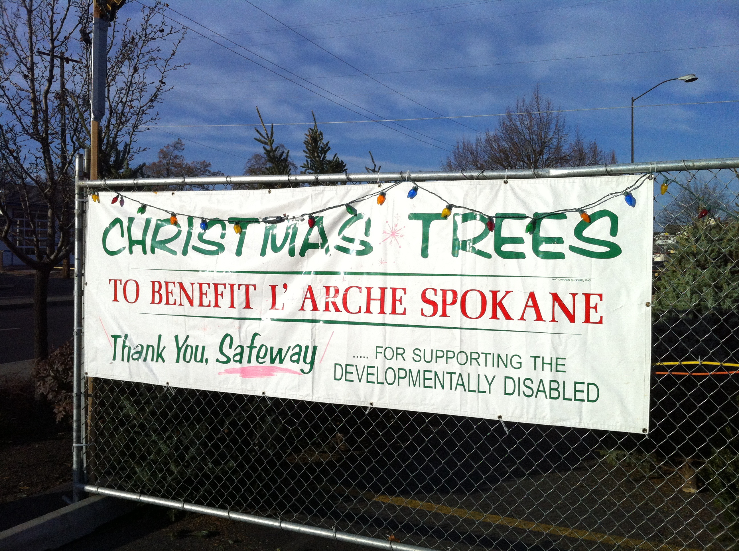 If you still haven’t bought a Christmas tree, you might head on over to the parking lot in front of the Safeway at Hamilton and Mission. The tree lot there is run by L’Arche Spokane , the support organization for people with developmental disabilities. We bought a tree there today, as we have the past several years, and our eight-footer is a beauty. Not a bad thing to spend money on Christmas and donate to charity, all at once.