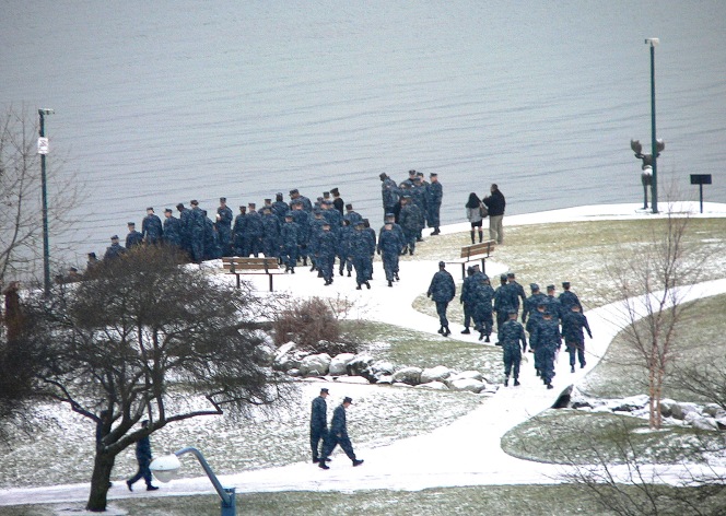 Photographer Don Sausser spotted more than 100 military personnel walking from the Coeur d’Alene Resort to Independence Point this morning and called the resort to see what’s up. Seems there’s a conference involving the U.S. Navy today.