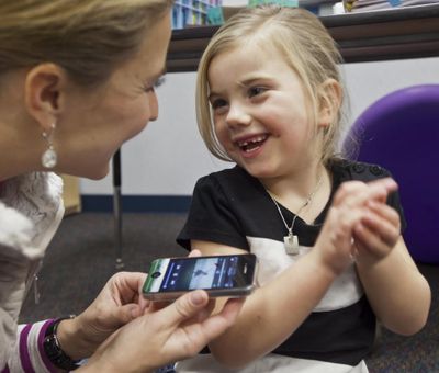 Brynn Jones, 6, who has Rett syndrome, listens as her mother, Makita Jones, left, plays her favorite song, “All The Pennies” by Mindy Glendhill, in Boise. Gledhill and the International Rett Syndrome Foundation are holding a benefit concert for Brynn at The Rose Room in downtown Boise Friday. (AP/Statesman photo: Darin Oswald)