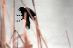(Brian Plonka SR file photo: A redwing blackbird approaches a cattail in Cougar Bay)